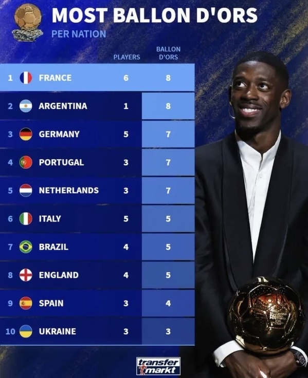 Kraje z największą liczbą Złotych Piłek