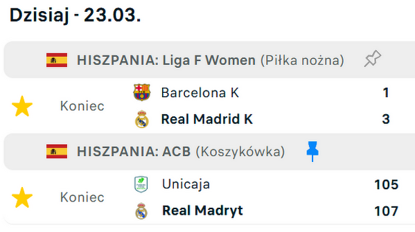 Wyniki na żywo