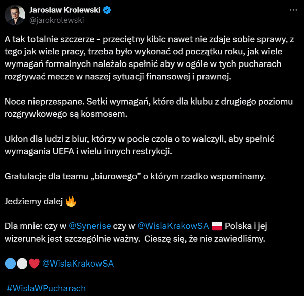Królewski po awansie Wisły do kolejnej fazy LKE