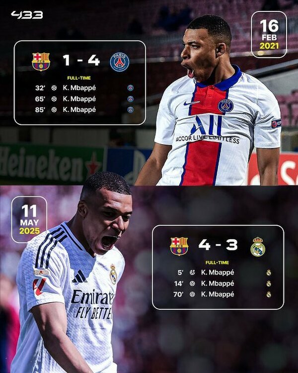 Kylian Mbappe to jedyny piłkarz, który dwukrotnie zdobył hat-tricka na stadionie Barcelony