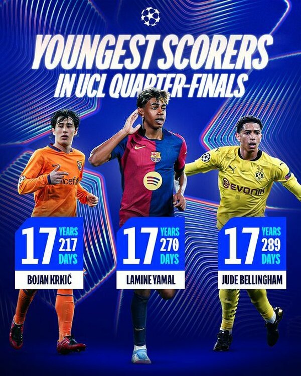 Lamine Yamal drugim najmłodszym strzelcem gola w ćwierćfinale LM
