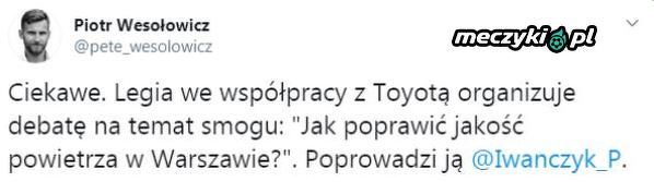 Legia organizuje debatę na temat smogu