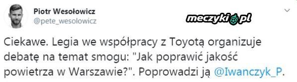 Legia organizuje debatę na temat smogu
