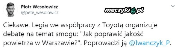 Legia organizuje debatę na temat smogu