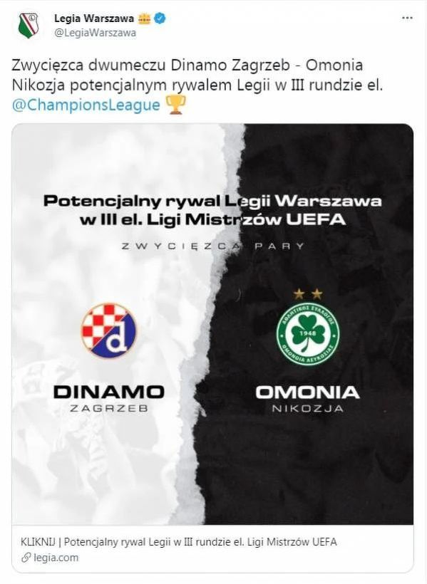 Legia poznała ewentualnych rywali w III rundzie el. do Ligi Mistrzów