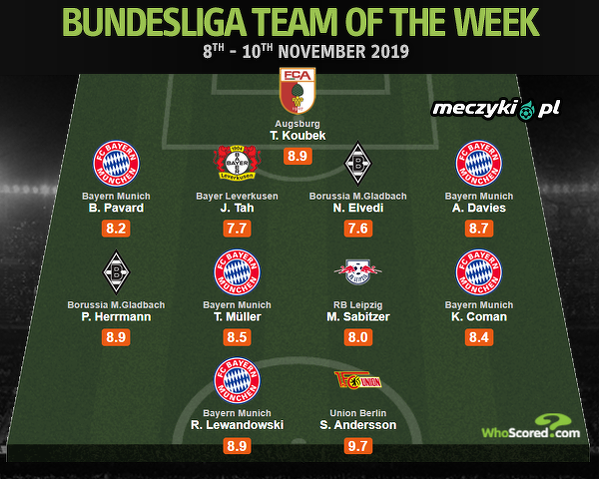 Lewandowski drużynie tygodnia Bundesligi