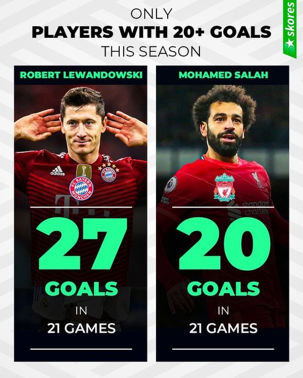 Lewandowski i Salah to jedyni dwaj gracze, którzy osiągnęli 20 bramek w tym sezonie
