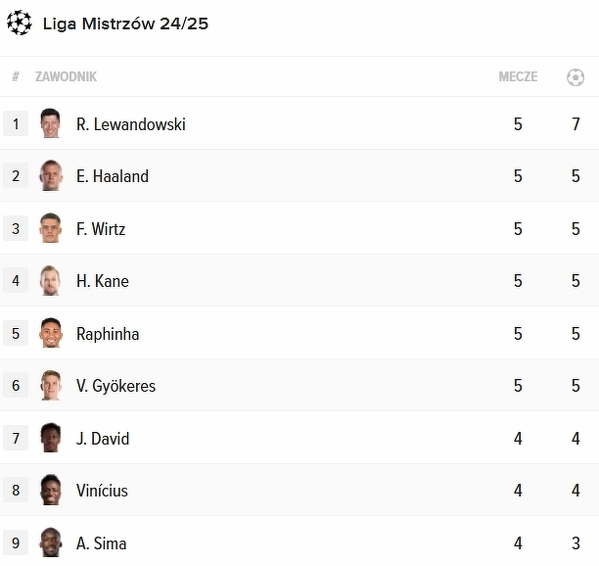 Lewandowski na czele klasyfikacji strzelców LM