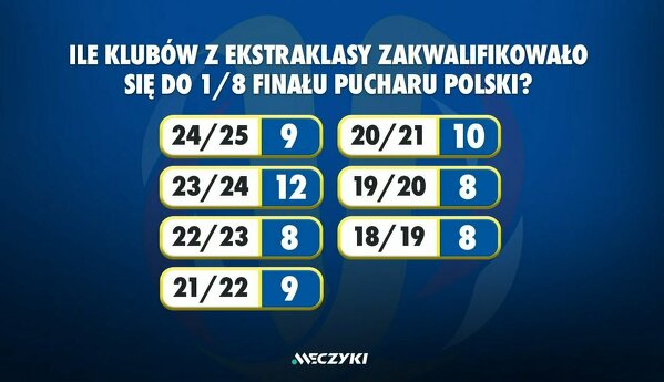 Liczba klubów z Ekstraklasy, które kwalifikowały się do 1/8 finału Pucharu Polski na przestrzeni lat.