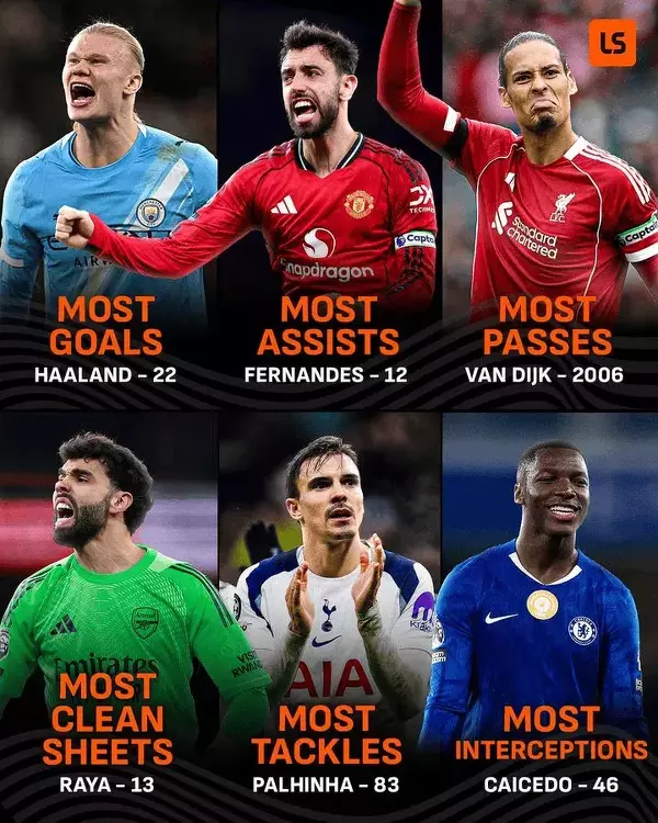 Liderzy statystyk tego sezonu Premier League