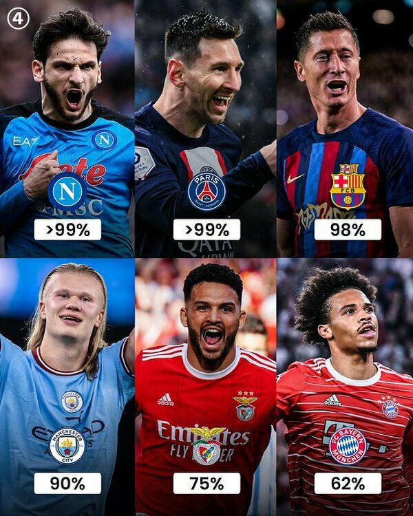 Liderzy z TOP6 lig i ich procentowe szanse na zdobycie mistrzostwa