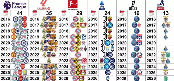 Ligi europejskie z największą liczbą awansów do 1/8 finału Ligi Mistrzów (ostatnie 10 lat)