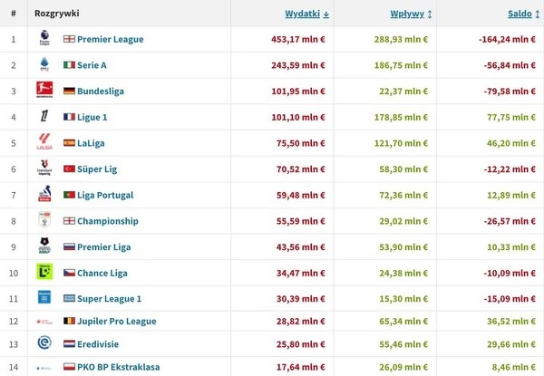 Ligi, które wydały najwięcej w zimowym okienku transferowym 2026