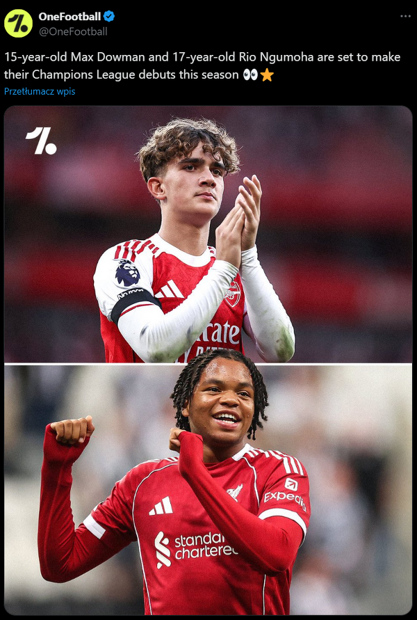 Liverpool i Arsenal zgłosiły wielkie talenty na Ligę Mistrzów