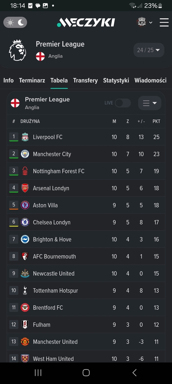 LIVERPOOL NA PIERWSZYM MIEJSCU W PREMIER LEAGUE❤️❤️❤️