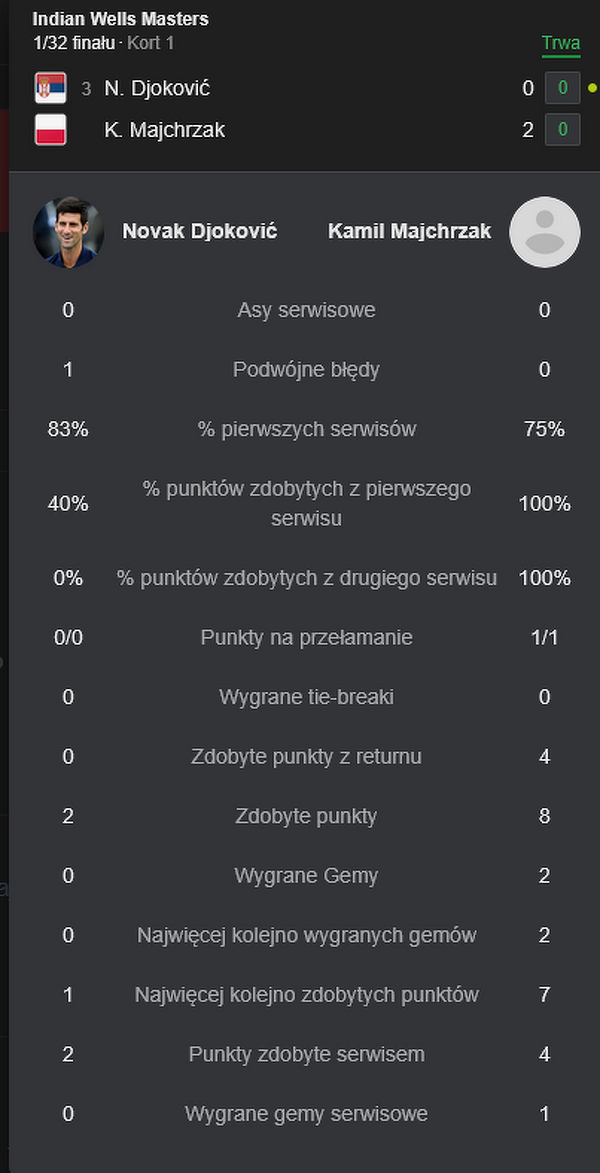 Ludzie, Kamil Majchrzak prowadzi z Nole Djokoviciem 2:0