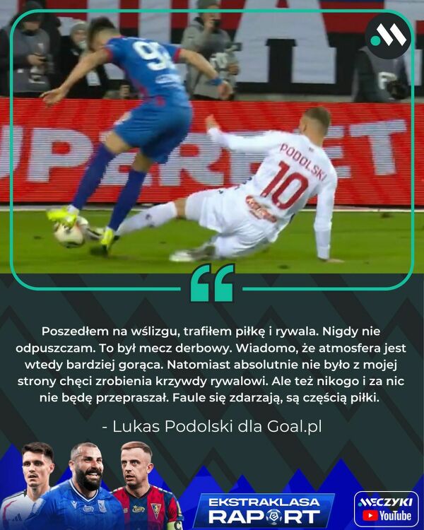 Lukas Podolski o faulu w meczu z Piastem Gliwice