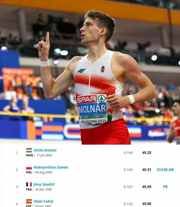 Maksymilian Szwed srebrnym medalistą halowych ME w biegu na 400 metrów. 20-latek ustanowił nowy rekord Polski