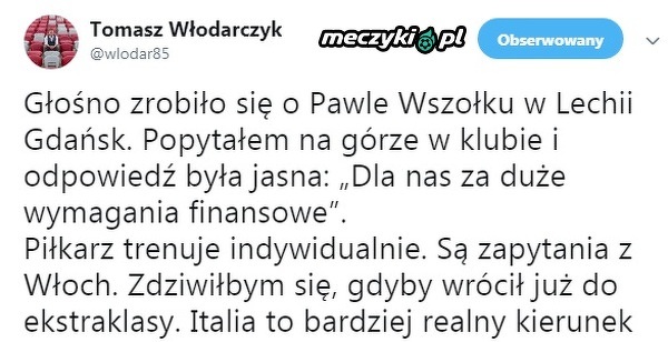 Małe szanse na powrót Wszołka do Ekstraklasy