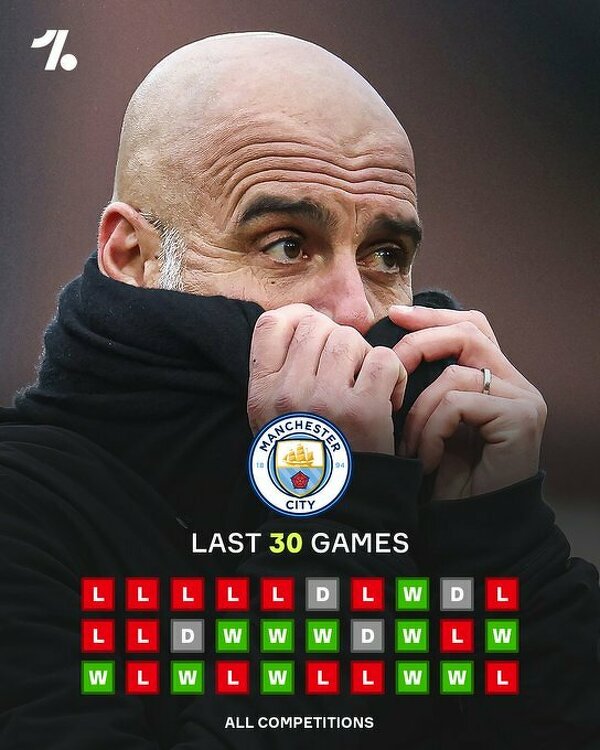 Man City poniósł aż jedenaście porażek w 30 ostatnich meczach