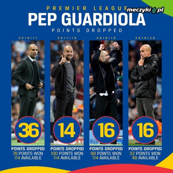 Man City zrzucił teraz tyle punktów w Premier League w tym sezonie, co podczas całej kampanii 2018/19