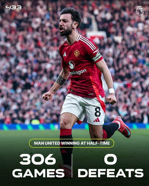 Manchester United nigdy nie przegrał meczu na Old Trafford w Premier League, gdy prowadził do przerwy