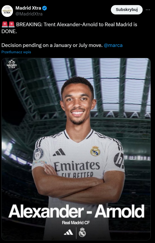Marca: Trent Alexander-Arnold zgodził się na transfer do Realu