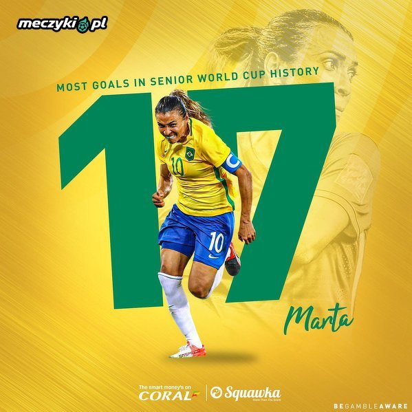 Marta zdobyła więcej goli w turniejach Pucharu Świata seniorów niż jakikolwiek inny zawodnik w historii