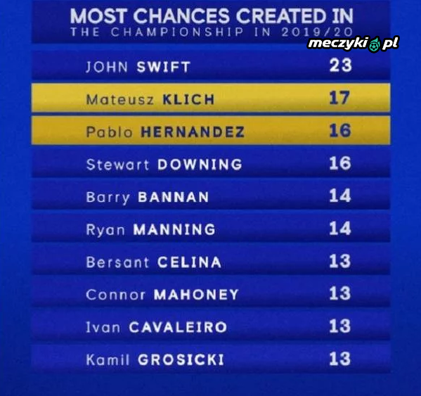 3. Mateusz Klich w czołówce Champioship pod względem kreowania sytuacji bramkowych!