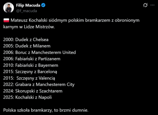 Mateusz Kochalski siódmym polskim bramkarzem z obronionym karnym w Lidze Mistrzów