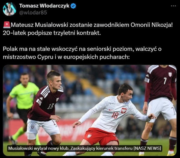Mateusz Musiałowski zostanie zawodnikiem Omonii Nikozja
