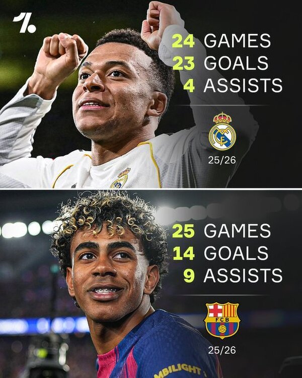 Mbappe i Yamal w tym sezonie La Liga