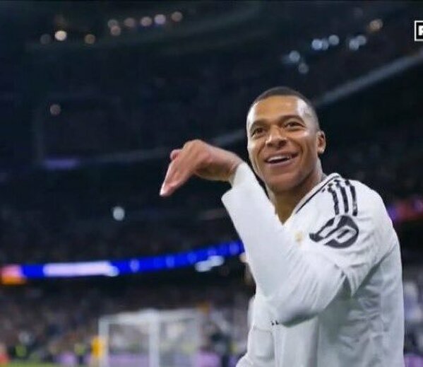 Mbappe pokazuje, jak Raphinha strzelił gola Realowi