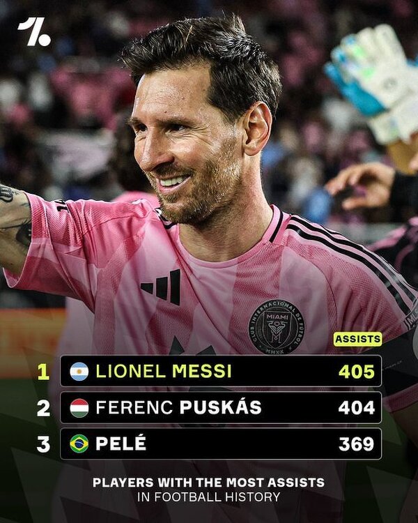 Messi ma już na koncie 405 asysty w karierze, dzięki czemu pobił rekord Puskasa