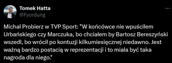 Michał Probierz o tym dlaczego wpuścił Bartosza Bereszyńskiego na boisko