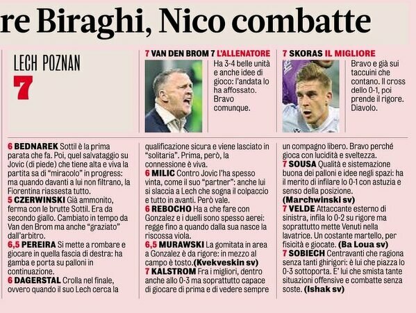 Michał Skóraś wybrany MVP spotkania z FIorentiną przez La Gazetta dello Sport