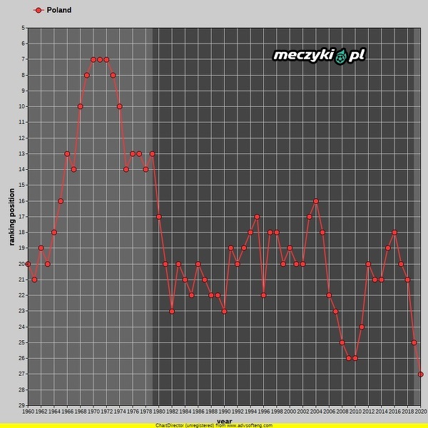 Miejsca Ekstraklasy w rankingu krajowym UEFA na przestrzeni lat