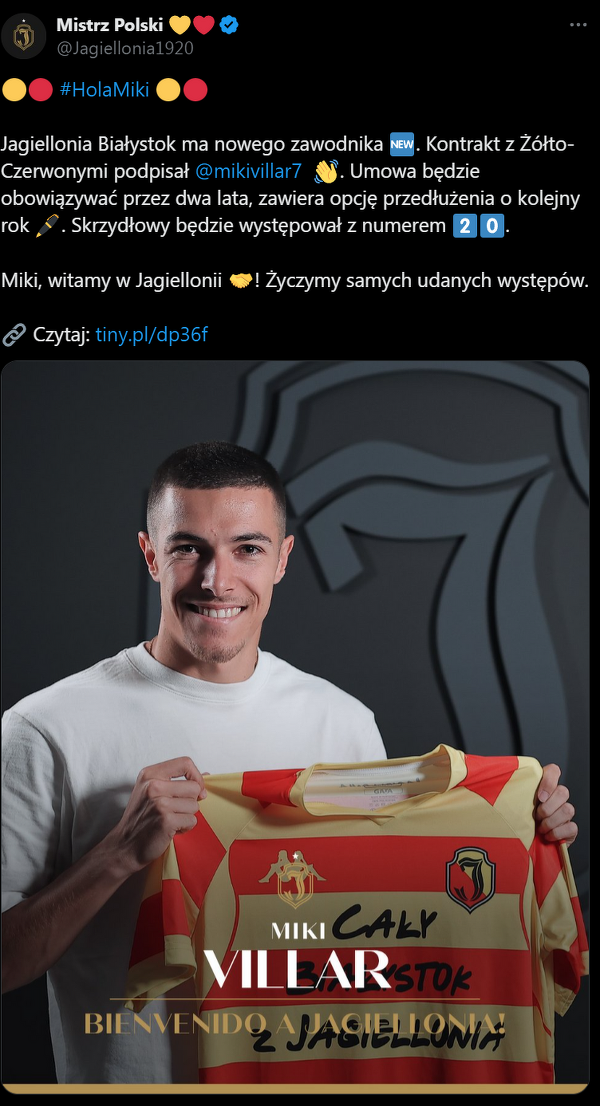 Miki Villar nowym zawodnikiem Jagiellonii Białystok