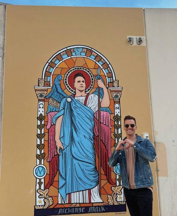 Milik zrobił sobie fotkę pod muralem z samym sobą
