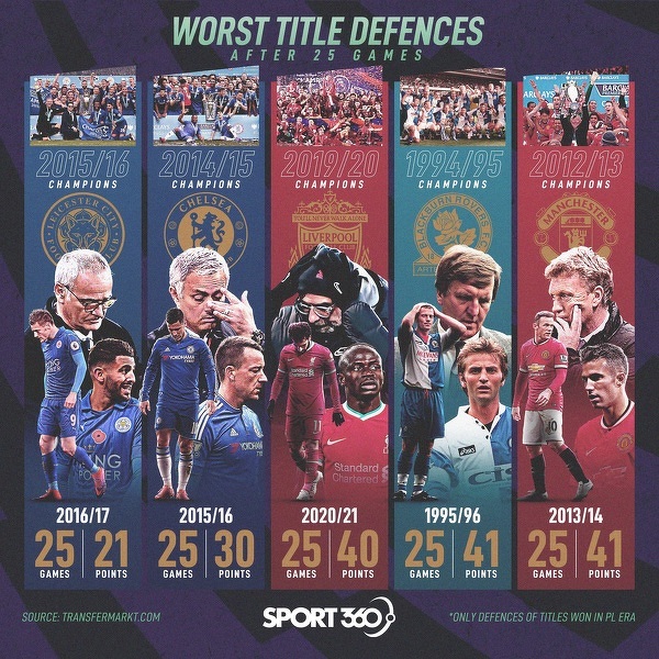Mistrzowie Premier League z najmniejszą liczbą punktów w kolejnym sezonie po 25 kolejkach