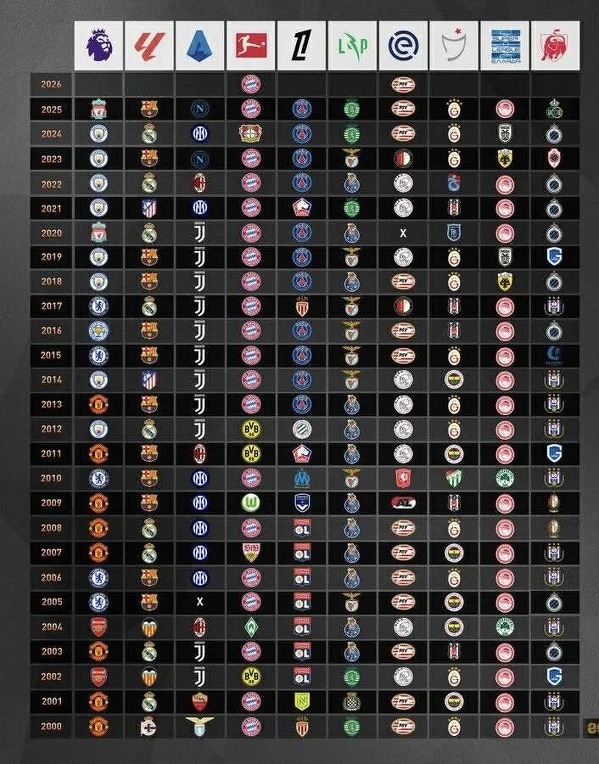 Mistrzowie w poszczególnych ligach w ostatnich latach