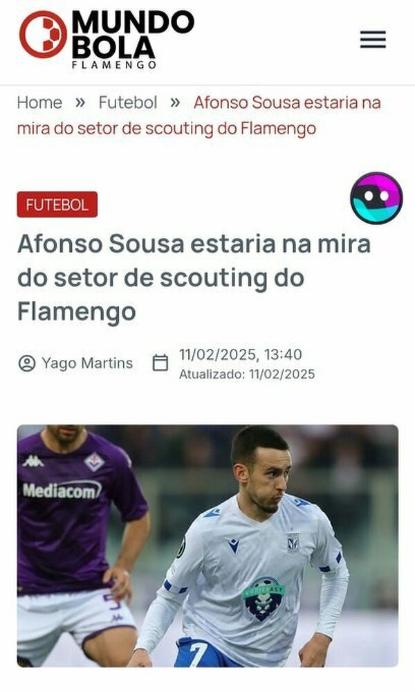 Mundo Bola Flamengo: Afonso Sousa znalazł się na celowniku Flamengo