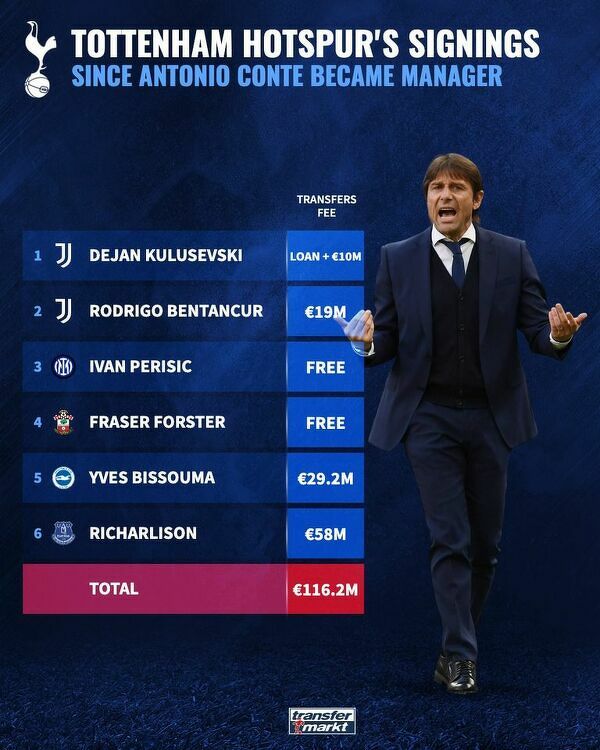 Nabytki Tottenhamu odkąd trenerem został Antonio Conte