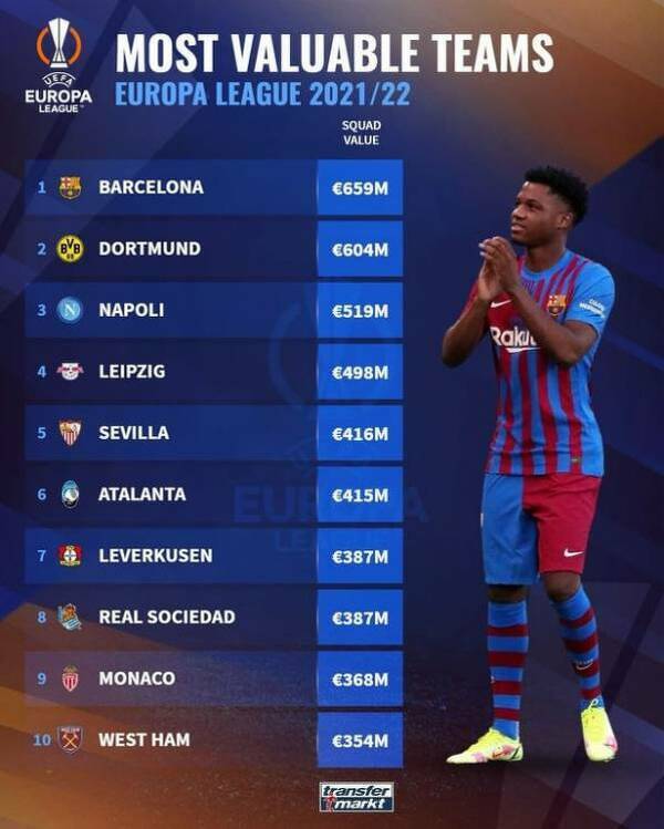 Najbardziej wartościowe drużyny występujące w Lidze Europy