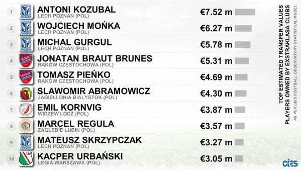 Najbardziej wartościowi gracze z Ekstraklasy według CIES