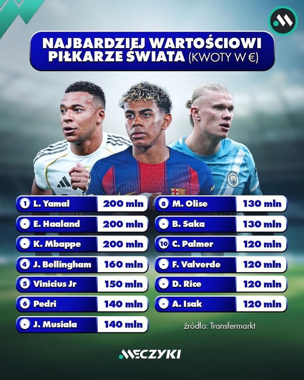 Najbardziej wartościowi piłkarze świata