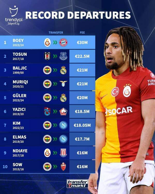 Najdrożej wykupieni piłkarze z tureckiej Super Ligi