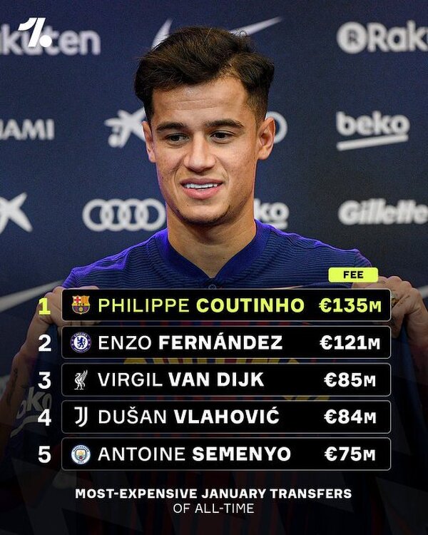 Najdroższe transfery podczas zimowego okienka