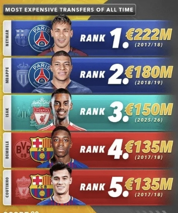 Najdroższe transfery w historii