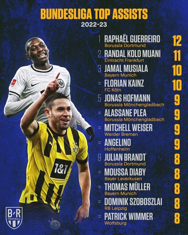 Najlepsi asystenci mionego sezonu Bundesligi